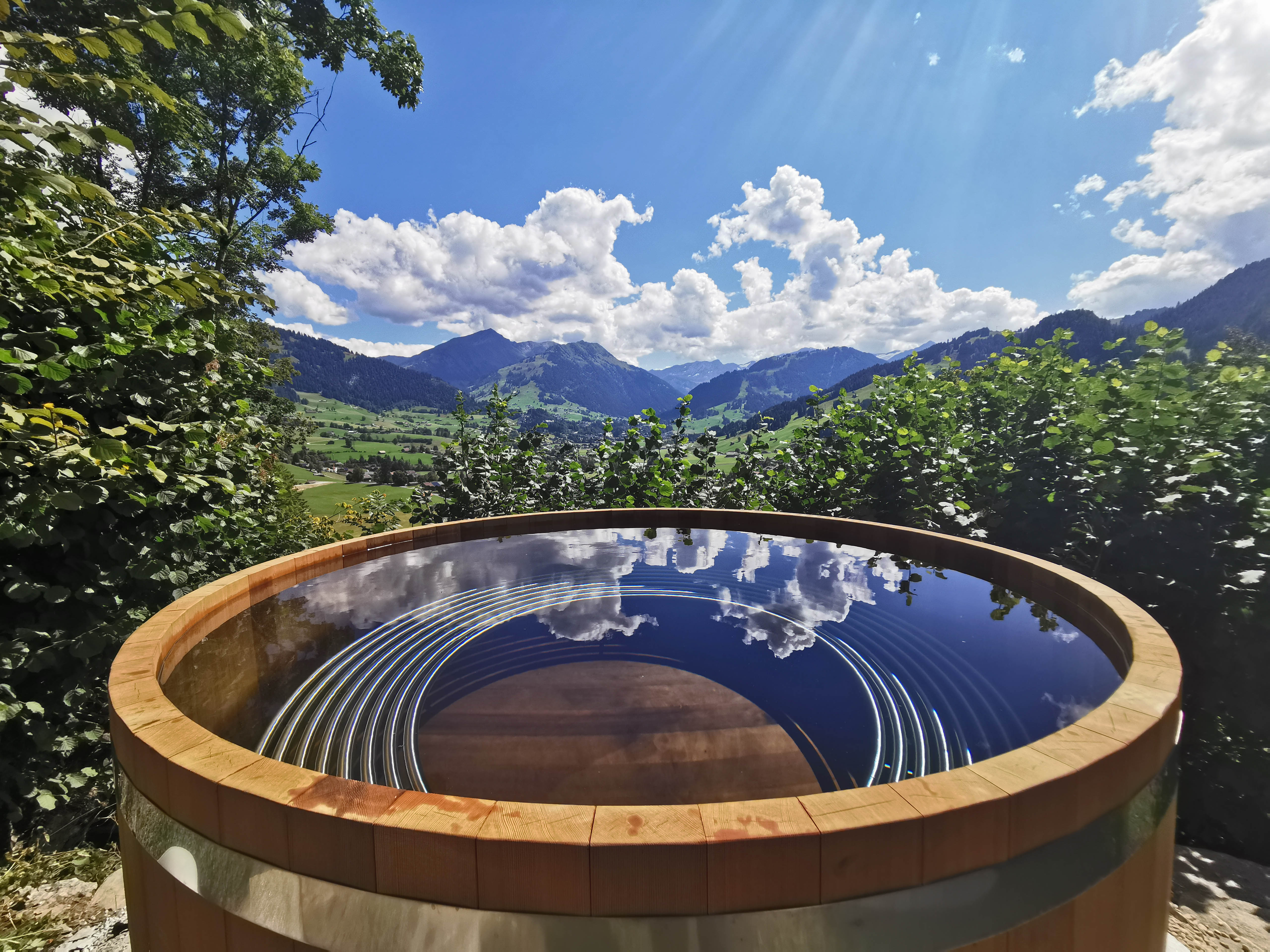 Hier finden Sie Ihren [ i-POT ] Hotpot oder das Badefass aus Schweizer Lärchenholz oder kanadischer Roter Zeder (Red Cedar).