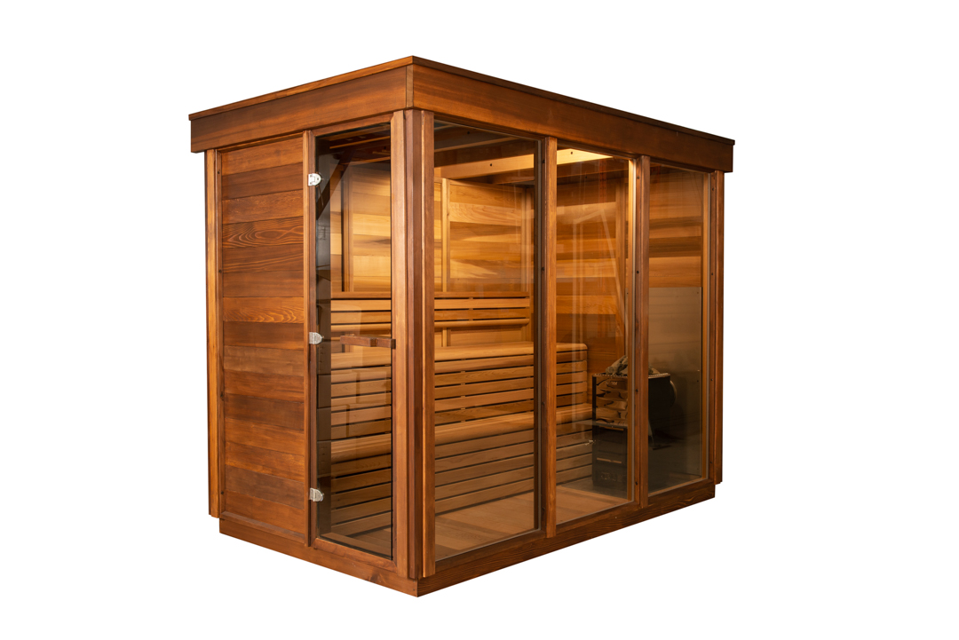 Unsere Outdoor- und Gartensaunen werden aus hochwertigen Materialien gefertigt, darunter edles Schweizer Arvenholz und Red Cedar. Arvenholz ist bekannt für seine wohltuenden Eigenschaften, die die Luftqualität verbessern und ein angenehmes Raumklima schaffen. Der charakteristische Duft des Arvenholzes hat eine beruhigende Wirkung und fördert die Entspannung. Red Cedar hingegen ist nicht nur langlebig, sondern auch natürlich resistent gegen Schimmel und Fäulnis, was Ihre Outdoorsauna zu einem pflegeleichten Wellness Highlight in Ihrem Garten macht.